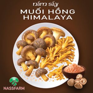 Nấm sấy muối hồng Himalaya Nassfarm là dòng snack healthy được chế biến từ nấm tươi trồng tại trang trại Nassfarm, trải qua quy trình sơ chế – sấy chân không – hoàn thiện tại nhà máy Nassfood, đảm bảo an toàn, tự nhiên và giữ trọn giá trị dinh dưỡng của nấm.